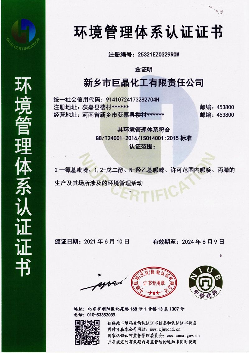 環(huán)境管理體系認(rèn)證證書